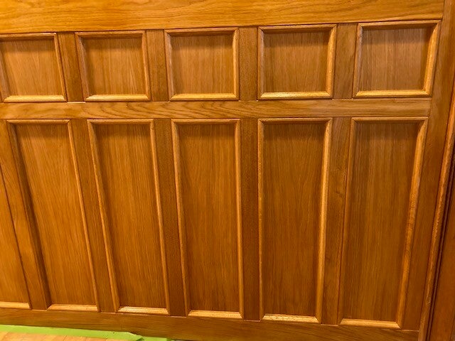 This restoration focused on matching white oak recessed panel wainscotting. The project included custom fabrication of profiles and best match color and finish to the original.